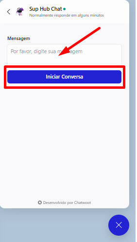 Ao clicar no botão para iniciar a conversa, você será direcionado para o nosso chatbot, que realizará um atendimento automatizado. Ele fará algumas perguntas para entender melhor a sua necessidade e assim te encaminhar para um dos membros da nossa equipe de suporte.