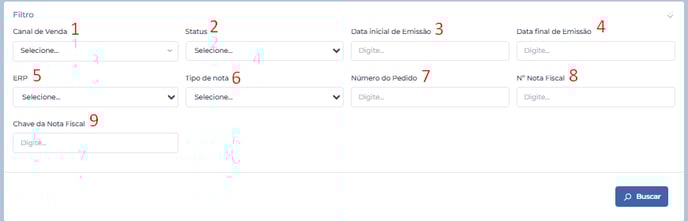- N° Nota Fiscal: filtra pelo numero da Nota Fiscal