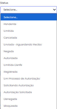 - Data Inicial de Emissão: filtra pela data inicial da emissão