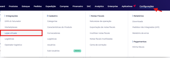 - Integração via API: você deverá solicitar ao desenvolvedor ou suporte do seu ERP para que ele gere o código interno que identifica os pedidos dessa loja quando criados no ERP.