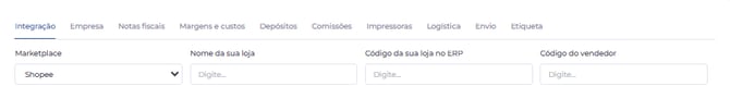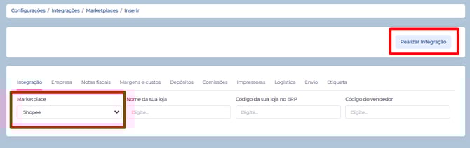Selecione "Shopee" no campo marketplace e clique em "Realizar Integração".