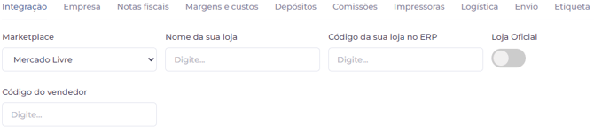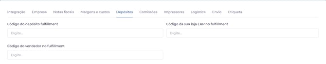 Caso NÃO tenha necessidade, os campos "Código do depósito fulfillment", "Código da sua loja ERP no fulfillment" e "Código do vendedor no fulfillment" devem ficar vazios.