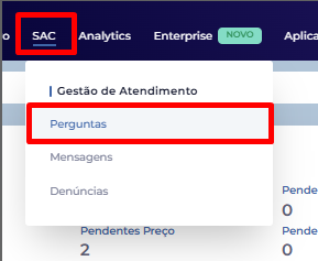 Para começar, feito login no Magis5 Hub, vá até "SAC" e depois clique em "Perguntas".