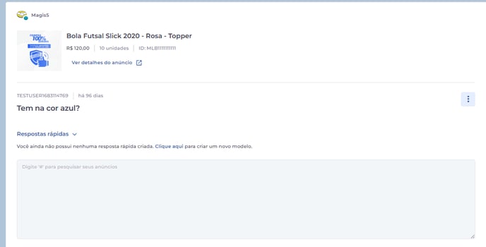 Dentro do Magis5 Hub, você pode visualizar e responder às perguntas feitas por compradores nos seus anúncios do Mercado Livre.