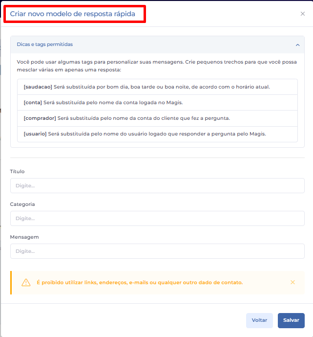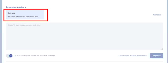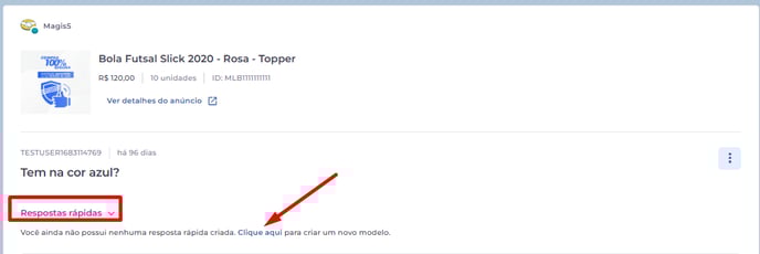 Além disso, é possível criar respostas rápidas para agilizar o atendimento, especialmente para perguntas recorrentes ou específicas de um determinado anúncio.