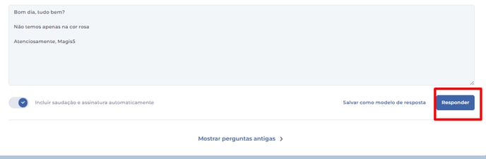Quando finalmente escrever a resposta a ser enviada ao comprador respondendo duvida, basta clicar em "Responder" e sua resposta será enviada.
