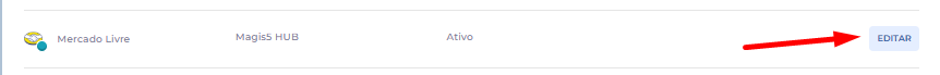 Na tela de marketplace edite a integração do Mercado Livre que deseja realizar o ajuste de "Multi origem"