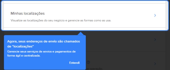 Dentro do painel do Mercado Livre, você pode visualizar todas as suas localizações acessando a opção "Minhas Localizações".
