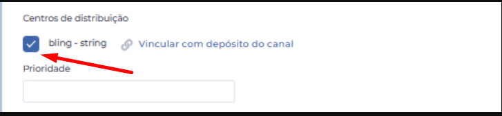 Selecione a opção do depósito do BLING; será exibida a caixa de prioridade, porém o preenchimento da ordem de depósito não é obrigatório.