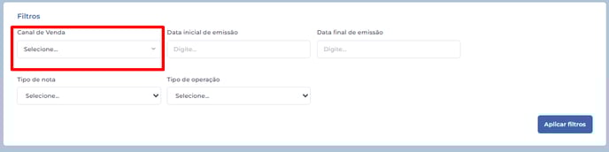 3 - Tipo de nota: o tipo da Nota Fiscal que deseja filtrar (o filtro mais comum que pode utilizar no Magis HUB seria o "Vendas ao Cliente")