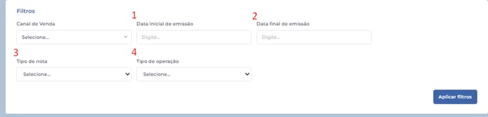 1 - Data inicial de emissão: permite filtrar as notas fiscais a partir de uma data específica de emissão.