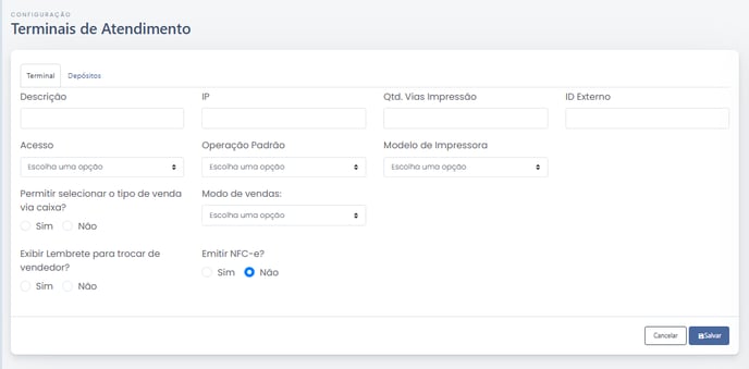💡 Importante: Antes de iniciar qualquer venda, é necessário configurar um terminal de atendimento.