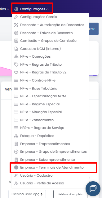 Feito login no Magis5 ERP vá até "Configurações" e por fim "Empresa - Terminais de Atendimento"