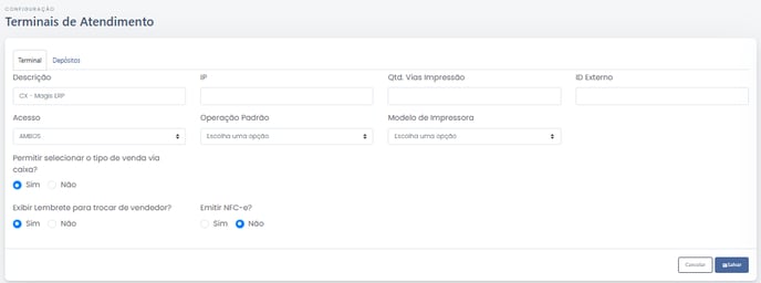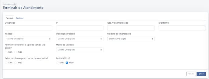 Portanto, antes de iniciar qualquer venda, é necessário configurar um Terminal de Atendimento.