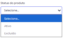 - Status do produto: filtra pelo status do produto, "excluído" ou "ativo"