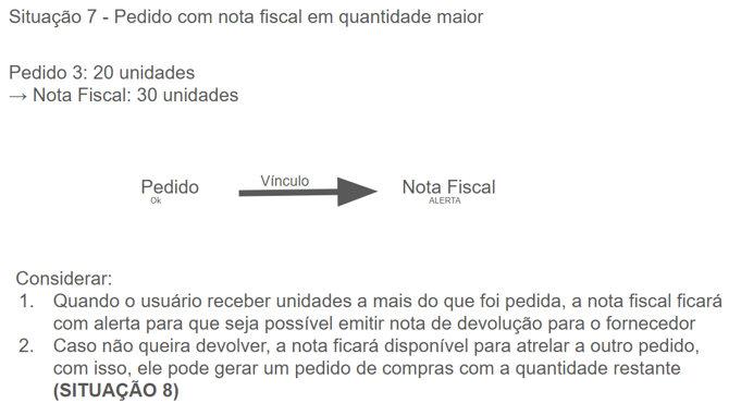 - A quantidade excedente da nota fiscal não é automaticamente incorporada ao pedido.