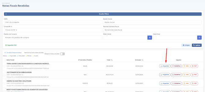 - Aguardando importação: a nota fiscal ainda não foi importada para o estoque;