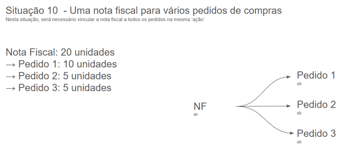 - O usuário vincula a mesma nota fiscal a múltiplos pedidos de compra.